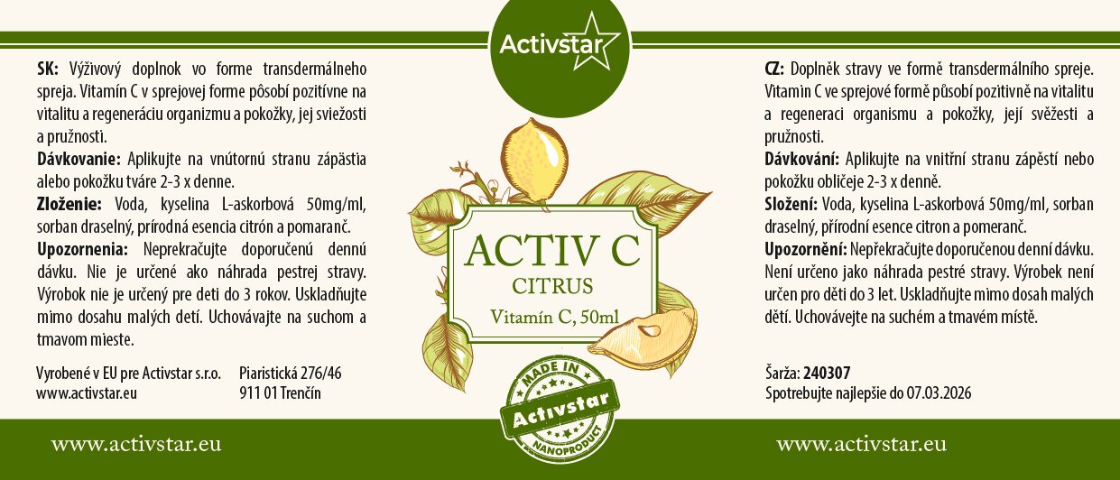 A C-vitamin spray formájában pozitív hatással van a szervezet vitalitására és regenerálódására. Hozzájárul a bőr regenerálódásához, frissességéhez és rugalmasságához.