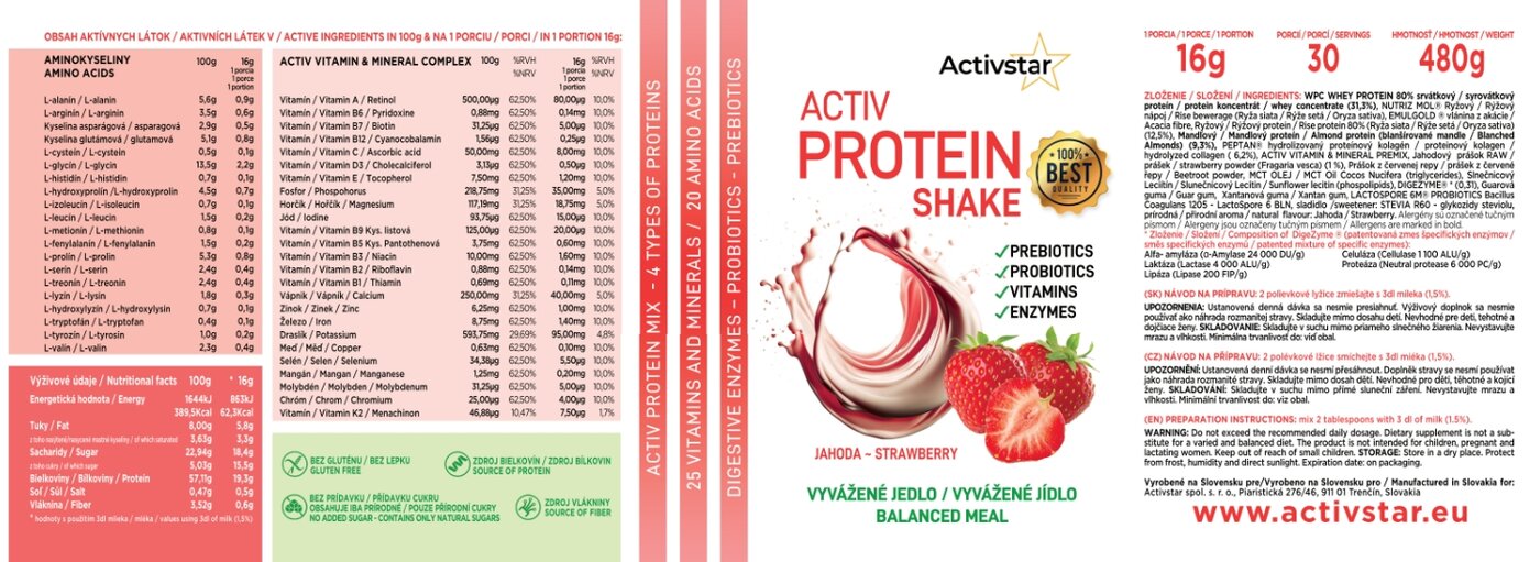 fokozza az egészségét és energiát tartson fenn egész nap. Mindezt egy finom banános ízzel, amely ízlésének is tetszeni fog. Az Activ Protein Shake Strawberry több mint egy fehérjeital - ez az új szövetségese a jobb fittség, egészség és vitalitás felé vezető úton!