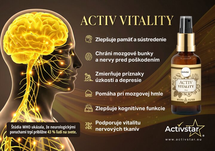 Az ACTIV VITALITY egy táplálékkiegészítő szublingvális spray formájában, amely a gyógygombák erejét kombinálja szinergikus hatással. Támogatja a kognitív funkciókat, a koncentrációt, a memóriát és a szellemi teljesítményt. Ideális diákoknak, vezetőknek, időseknek és mindenkinek, aki a szellemi vitalitást és rugalmasságot szeretné növelni.