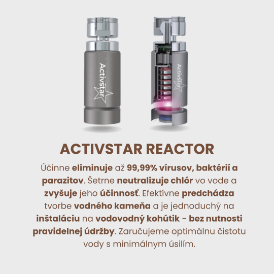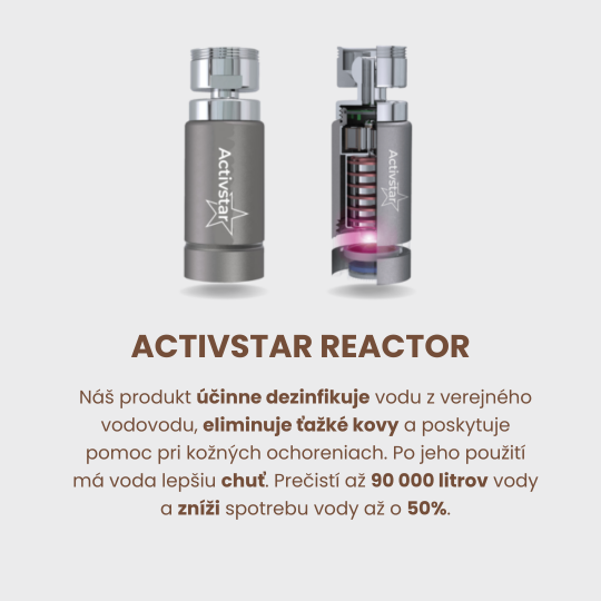 Az Activstar reaktor termék használatával jelentősen csökkenti a környezetszennyezést és megspórolja a palackozott víz vásárlásának költségeit, amely ráadásul újrahasznosítási kötelezettséggel jár. Az Activstar reactor segít a bőrbetegségeken (száraz, irritált bőr, pikkelysömör...), javítja a test és a fejbőr hidratáltságát.