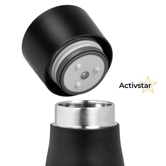 Az Activstar UVC palack kényelmet nyújt számunkra a mindennapi használatban. A termék könnyű, minőségi, duplafalú anyagokból készült, fejlett innovatív vákuumszigeteléssel, és akár 12 órán keresztül tartja a víz hőmérsékletét. A terméket úgy tervezték, hogy a palackban lévő víz mennyiségétől függetlenül kiegyensúlyozott legyen a víziváskor. A palack formája és külső védelme kényelmes fogást és könnyű használatot biztosít számunkra. A palackban 500 milliliter víz fér el.